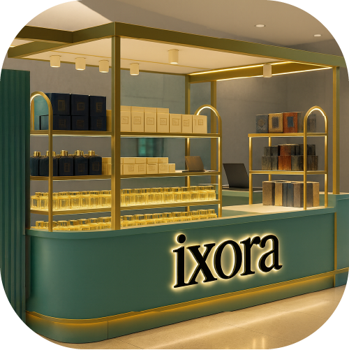 Ixora köşe mağazaları, küçük ama etkili tasarımıyla seçili koleksiyonlarımızı müşterilerimize sunar. Şık alan düzeni ve görsel tasarımıyla markamızın prestijini güçlendirirken, kişiye özel ilgi ve danışmanlık imkânı sağlar. Bu konsept, lokal pazarda marka bilinirliğini artırmak ve ziyaretçilere premium bir alışveriş deneyimi yaşatmak için mükemmel bir çözümdür.