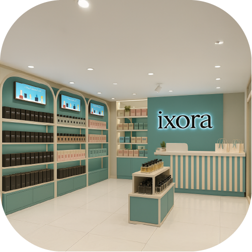 Ixora deneyim noktaları, sadece alışveriş değil; markamızın ruhunu hissedebileceğiniz özel alanlardır. Modern mimarisi, zarif dekorasyonu ve geniş ürün yelpazesiyle ziyaretçilere ayrıcalıklı bir dünyanın kapılarını aralar. Profesyonel danışmanlarımız eşliğinde koleksiyonlarımızı yakından inceleyebilir, sizin için özel hazırlanan kokuları deneyimleyebilirsiniz. Bu mekanlar, Ixora’nın ulusal ve uluslararası alandaki prestijini yansıtarak, kaliteyi ve şıklığı en üst düzeyde yaşatmak için tasarlanmıştır.