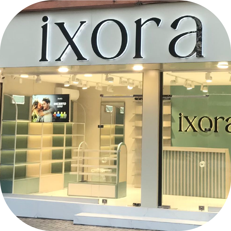 Ixora köşe mağazaları, küçük ama etkili tasarımıyla seçili koleksiyonlarımızı müşterilerimize sunar. Şık alan düzeni ve görsel tasarımıyla markamızın prestijini güçlendirirken, kişiye özel ilgi ve danışmanlık imkânı sağlar. Bu konsept, lokal pazarda marka bilinirliğini artırmak ve ziyaretçilere premium bir alışveriş deneyimi yaşatmak için mükemmel bir çözümdür.