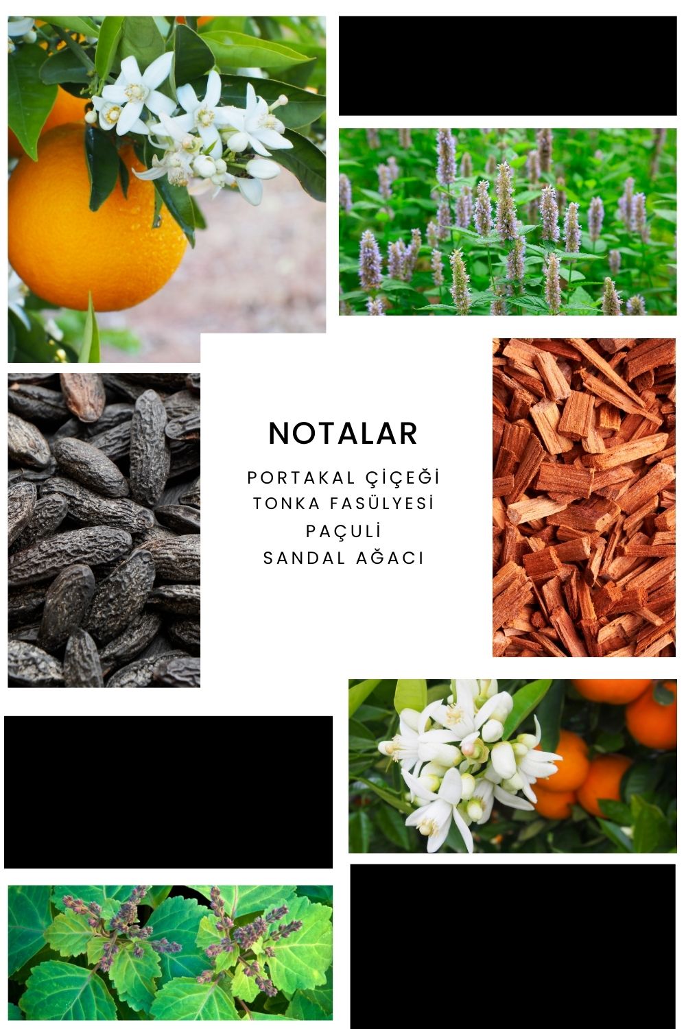 Notalar: Portakal çiçeği, tonka fasülyesi, paçuli ve sandal ağacı
