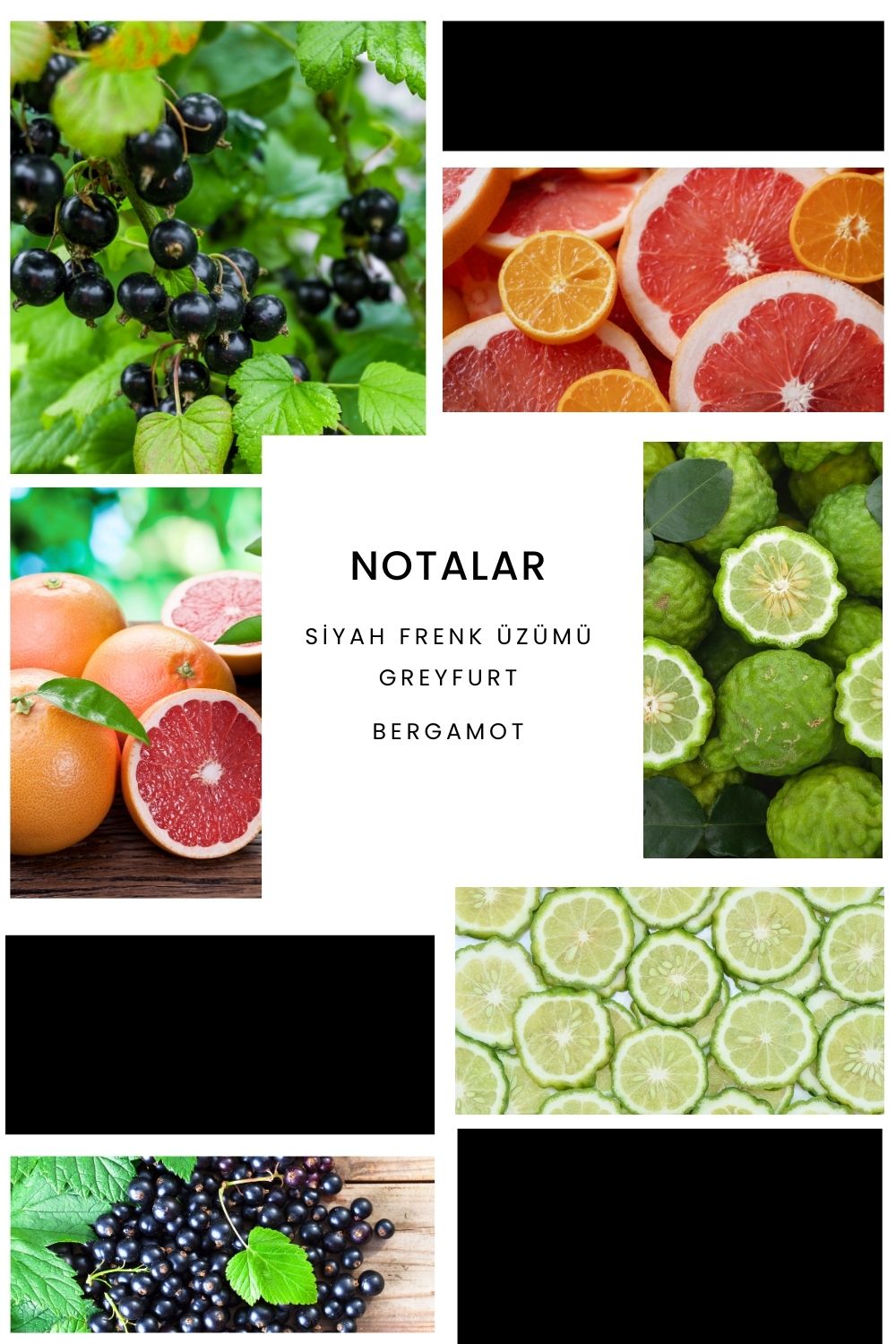 Notalar: Siyah frenk üzümü, greyfurt, bergamot