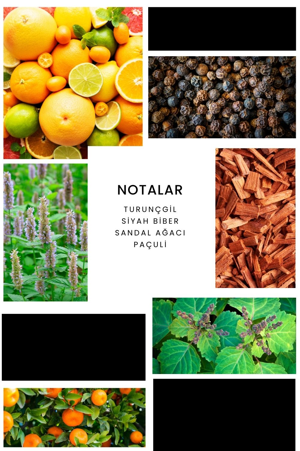 Notalar: Turunçgil, siyah biber, sandal ağacı ve paçuli