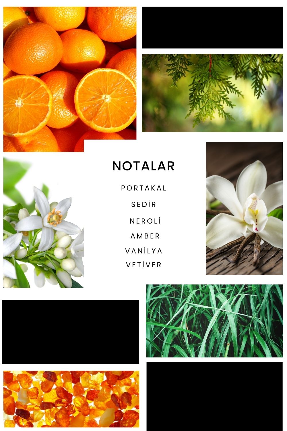 Notalar: Portakal, sedir, neroli, amber, vanilya ve vetiver