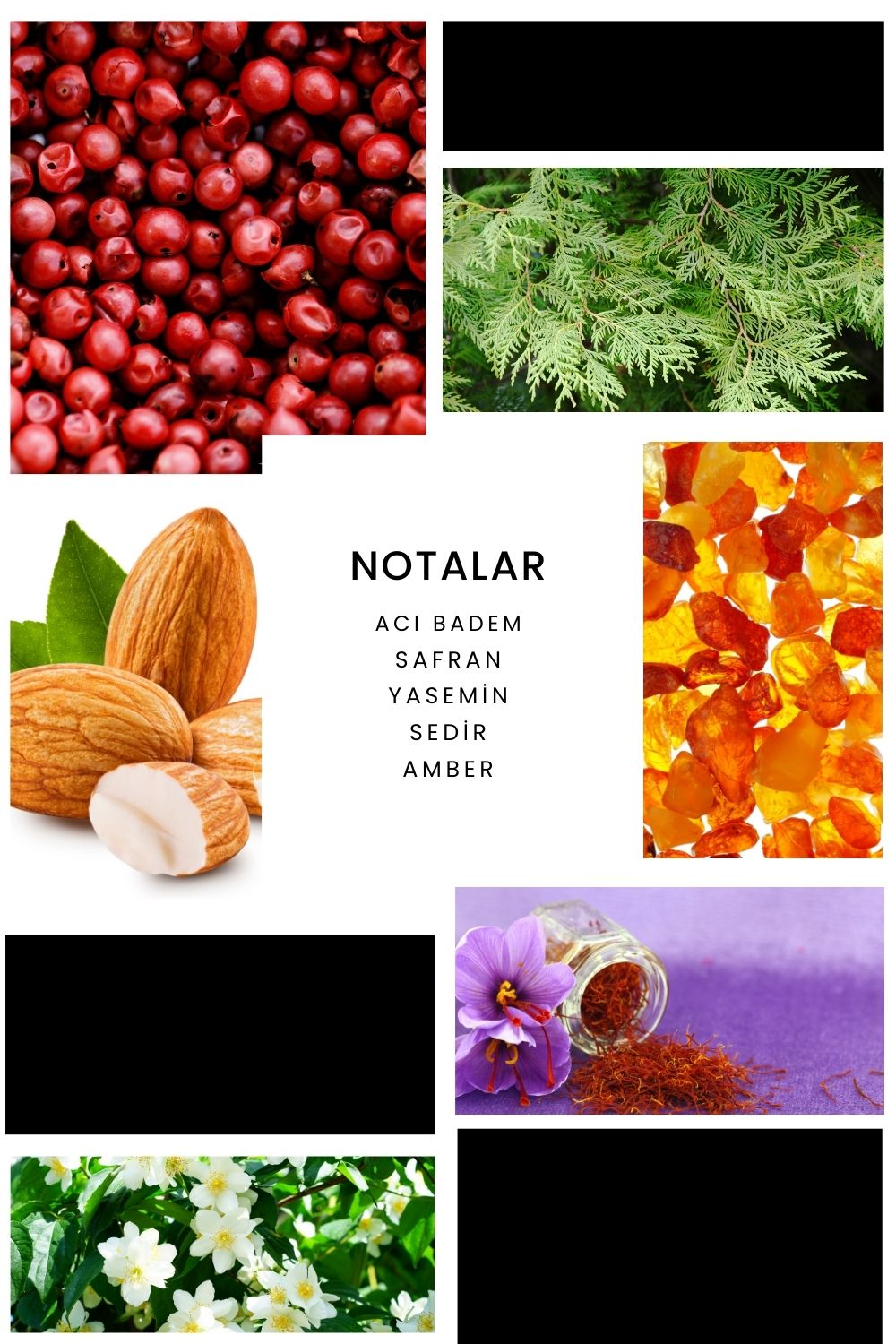 Notalar: Acı badem , safran, yasemin, sedir ve amber