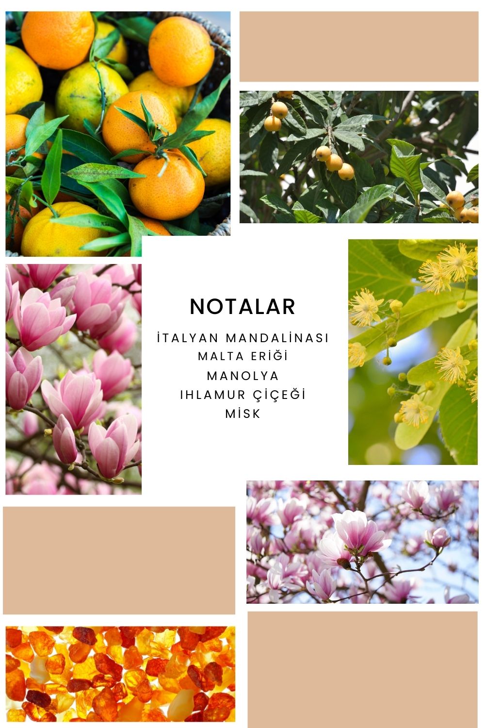 Notalar: İtalyan mandalinası, malta eriği, manolya, ıhlamur çiçeği ve misk