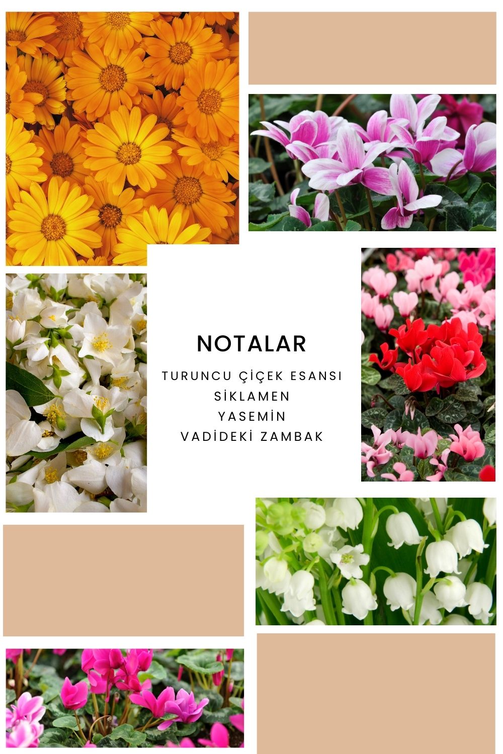 Notalar: Turuncu çiçek esansı, siklamen, yasemin ve vadideki zambak