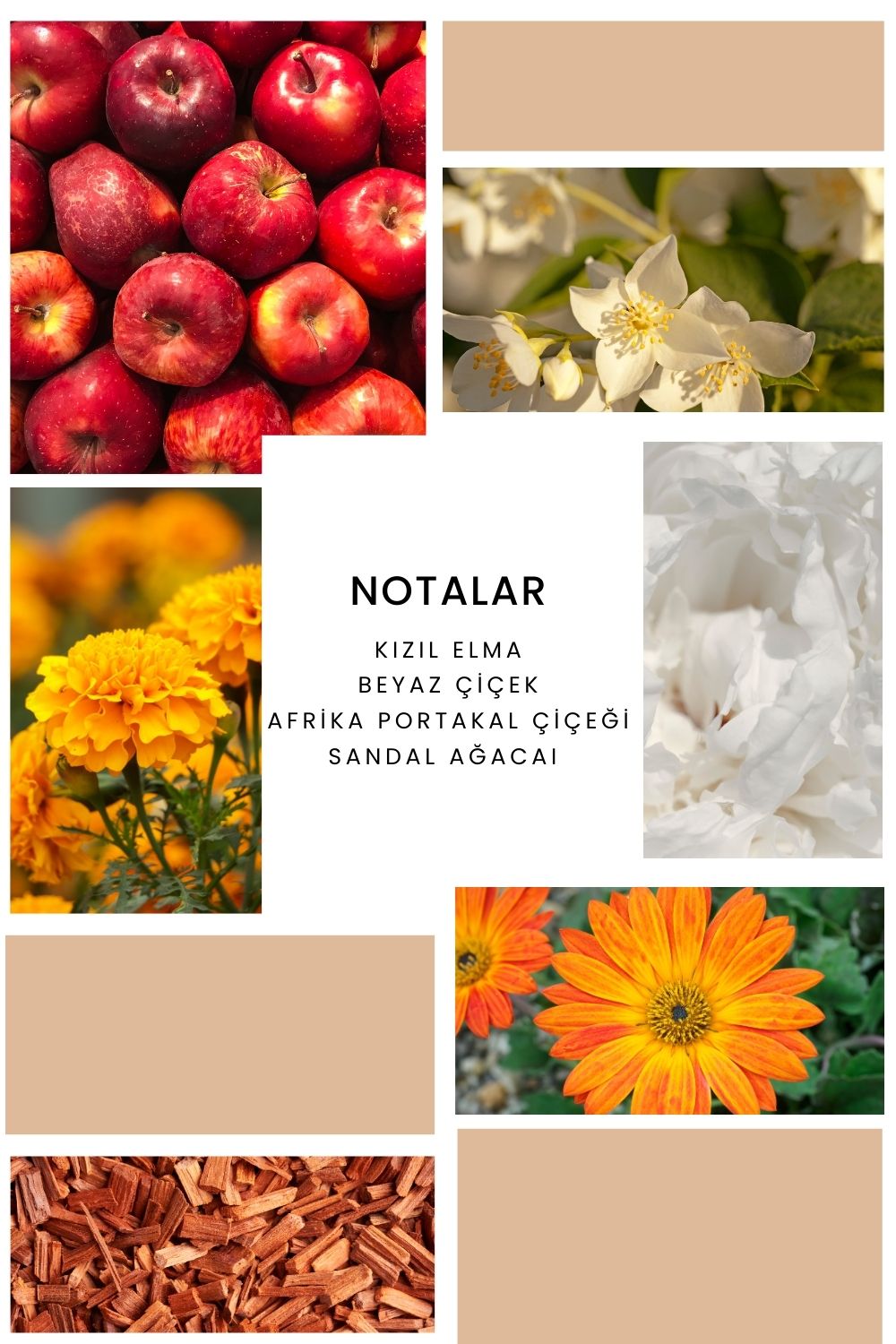 Notalar: Kızıl elma, beyaz çiçek, afrika portakal çiçeği ve sandal ağacı