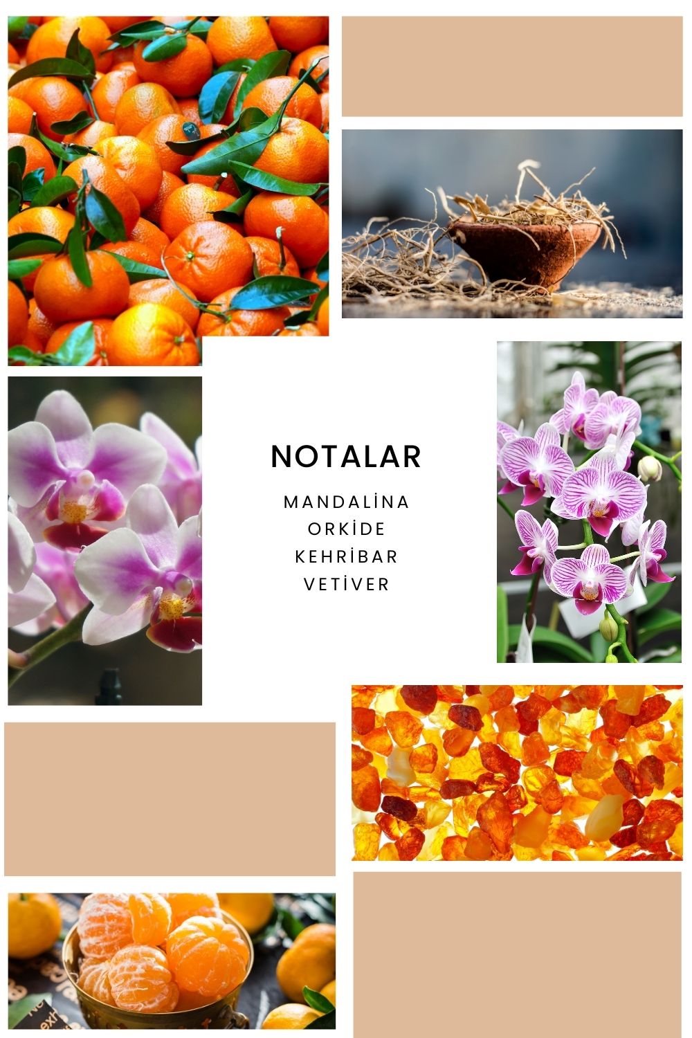 Notalar: Mandalina, orkide, gri kehribar ve vetiver