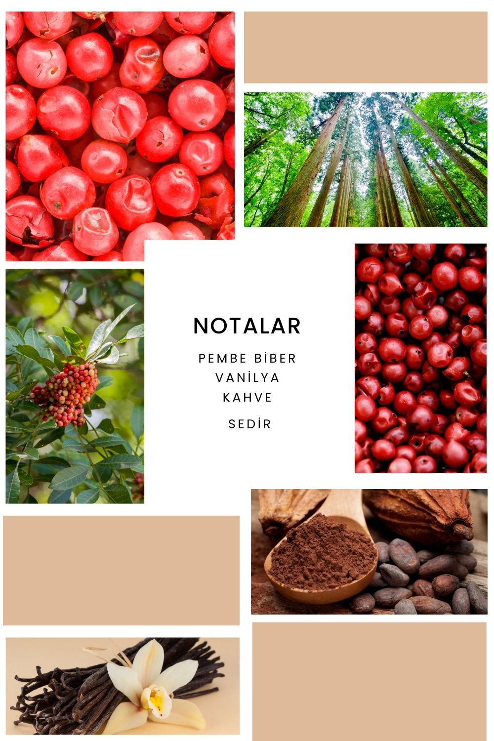 Notalar: Pembe biber, kahve, vanilya ve sedir
