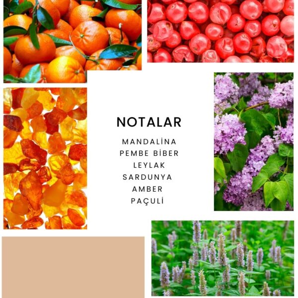 • Mandalina ve adaçayı mavi sümbül, şeftali çiçeği, kuşburnu, iris, misk, sandal ağacı ve sedir gibi doğal içeriklerle zenginleştirilmiş formülüyle duyularınızı şımartır