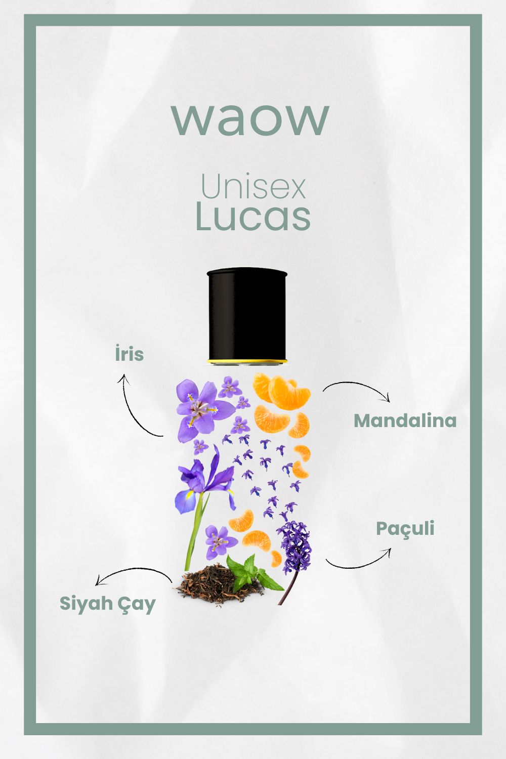 Waow serisi doğadaki saf moleküllerden biri olan Lucas’ın devrim niteliğindeki kokusunu merkezine alır. Minimalist yapısıyla zarif ve odunsu bir koku sunan bu parfüm, ciltle birleşerek her kişide farklı bir etki bırakır. Hafif, ama kalıcı izlenimiyle, kendine özgü bir çekicilik yaratır ve etrafınızdakilerin dikkatini çeker. Hem kadınlar hem de erkekler için ideal bir uniseks parfüm olan Waow Lucas, sadelikte mükemmelliği arayanlara hitap eder.